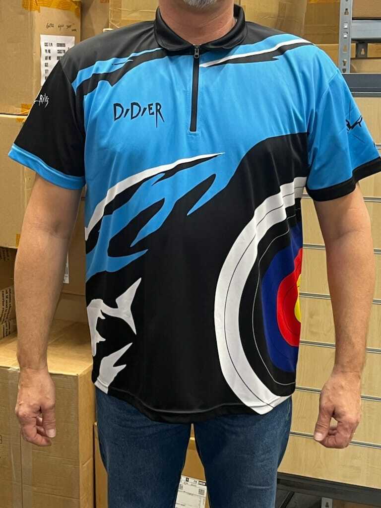 Pack polo et veste survêtement aux couleurs du club, marquage du prénom sur la poitrine selon la latéralité (à droite pour un archer droitier / à gauche pour un archer gaucher).